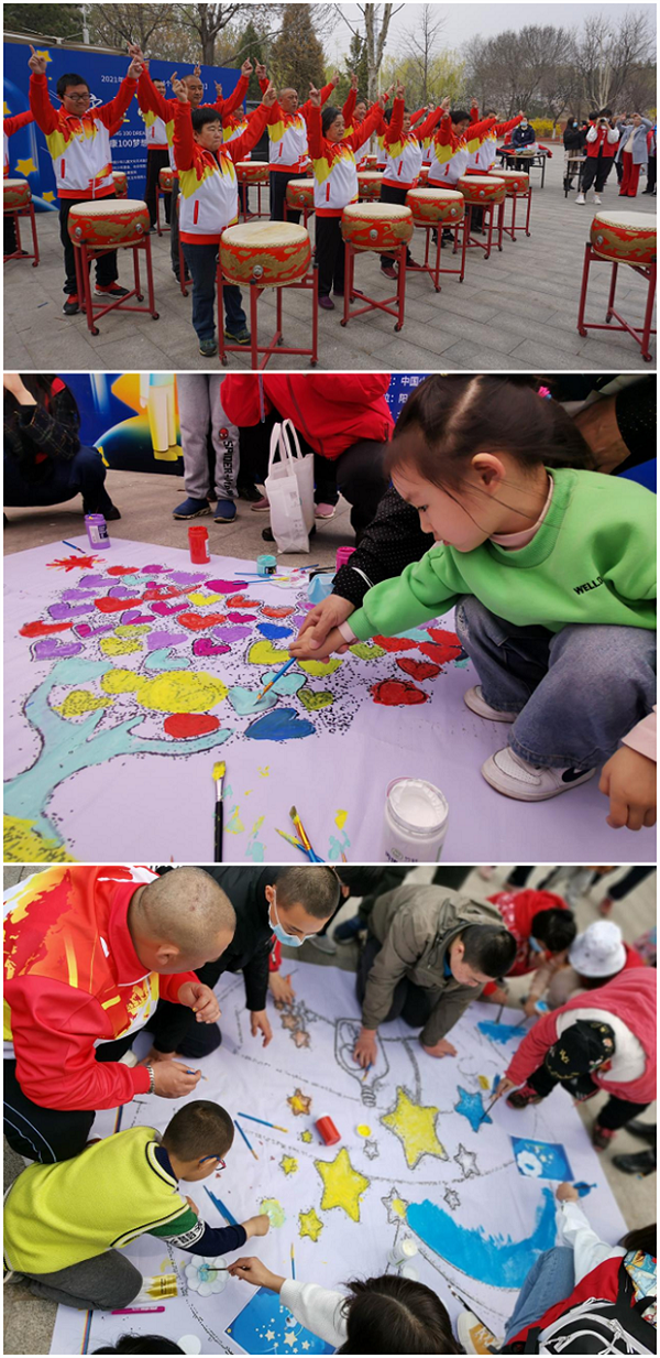 在活动现场玉华康养中心表演了锣鼓舞,引得现场阵阵掌声,志愿者们还和孩子们一起画画,还进行了打地鼠游戏和徒步4公里,路途上洋溢着他们的欢声笑语。游戏结束后,公益者们还为参加的残障人士颁发了奖品。