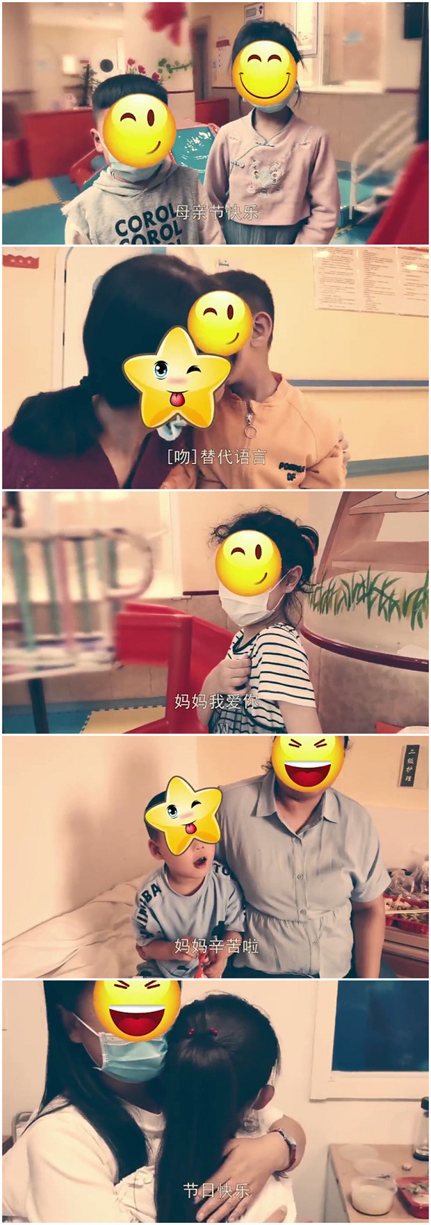 每位母亲的愿望都是希望自己的孩子,可以健健康康,快快乐乐的成长。今天是母亲节,北京天使儿童医院的住院患儿也向妈妈送上了自己的祝福!看到孩子们日渐康复,妈妈们的脸上也是露出欣慰的笑容!