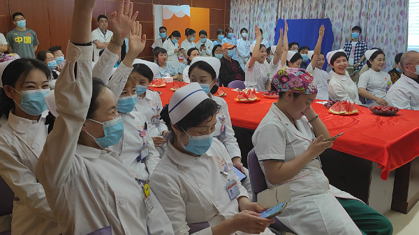 活动中还有护理基础知识抢答题,比赛精彩纷呈,高潮迭起,护士们个个信心十足,对答如流,取得不错的成绩,护理知识抢答赛在提高了全体护理人员的业务水平的同时,也增进了科室人员的凝聚力。